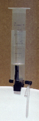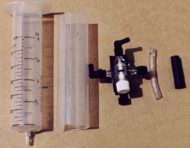 Baue einen Titrierer für weniger als 7 € und benutze als Werkzeug lediglich ein Taschenmesser. Man benötigt zwei 60 ccm Einwegspritzen, ungefähr 15 cm durchsichtigen Kunststoffschlauch, einen alten Stift und ein Luftventil für ein Aquarium. Teileliste Die Preise sind in Dollar, weil ich nicht recherchiert habe, was sie hier im Sanitärhandel kosten. Es wird wohl ähnlich sein.